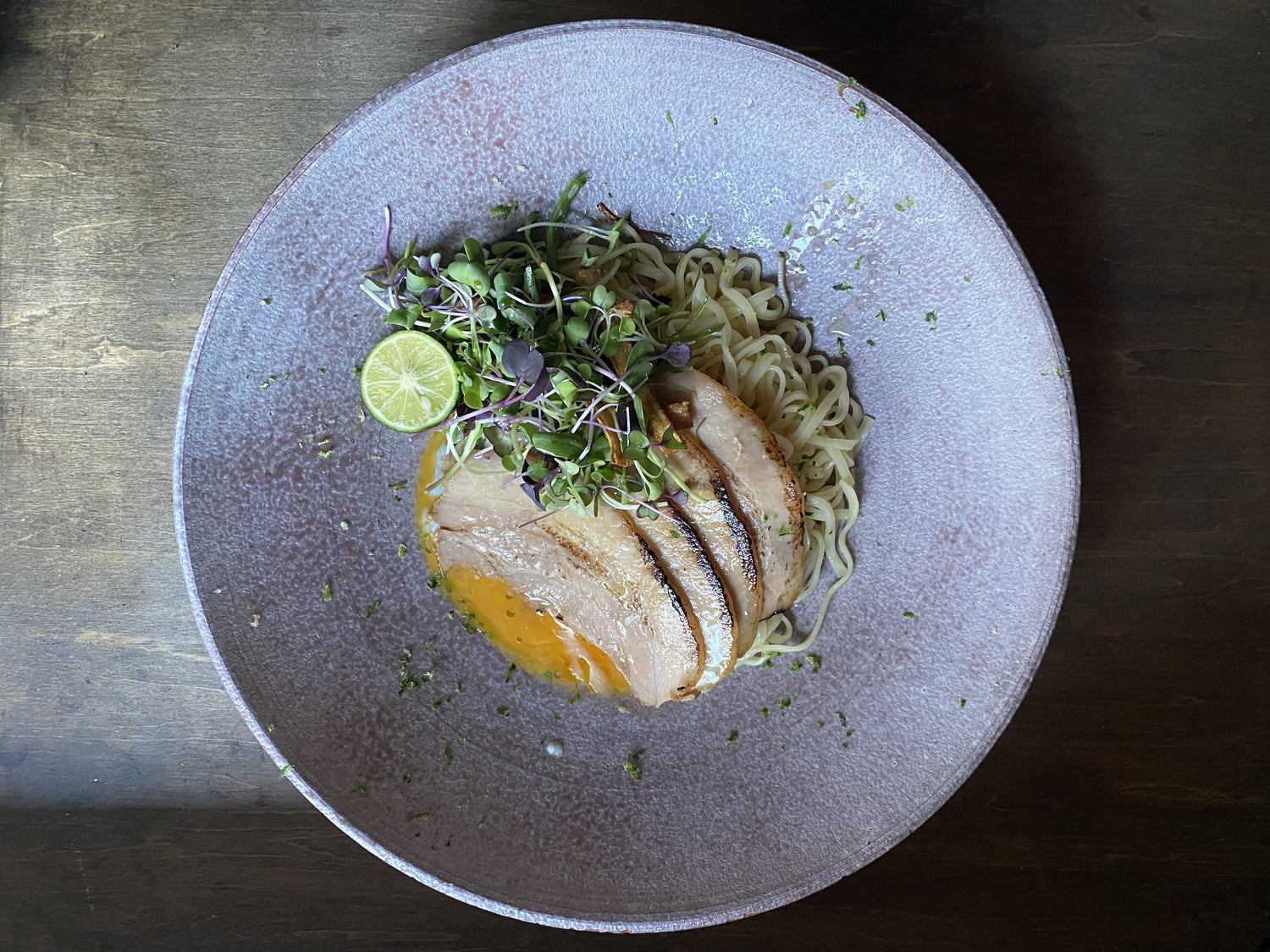 温かいまぜ麺でも冷たいまぜ麺でもOK、すだちを1/2個分ほど絞れば、すだちの酸味と香りがまぜ麺をさらに美味しくしてくれます。